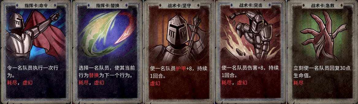 先知会获得五种基础卡牌:命令,急救,坚守,突击,急救。