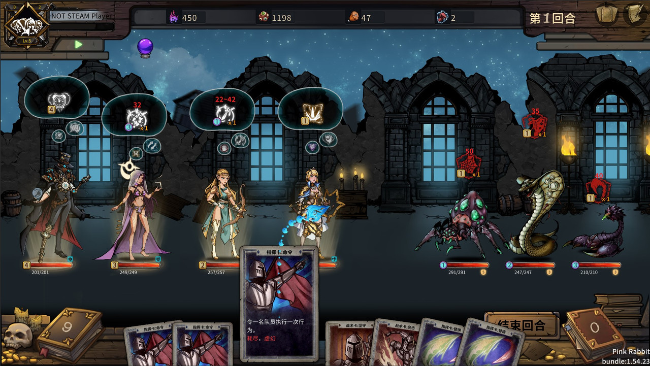 我们团队在主要参考了《杀戮尖塔》、《暗黑地牢》等前辈游戏的设计之后,最终决定采用”回合制卡牌战斗“方式作为战斗流程中的主要玩法。