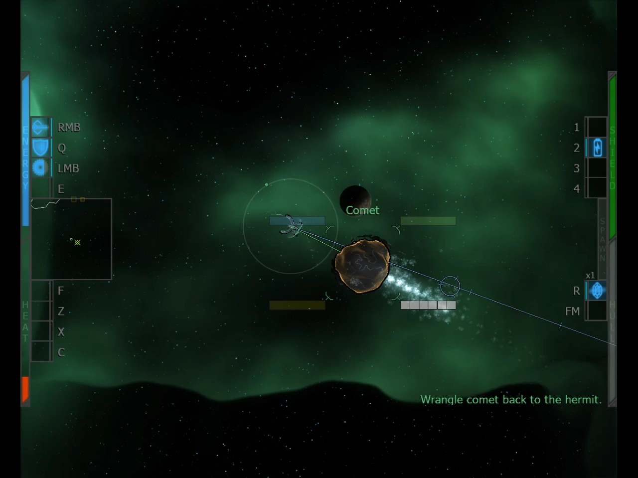 除了运动状态、可见度(隐形)、冷却时间和弹药量,支撑并限制上述技能的主要是四种机体状态:耐久、护盾、能量和热量。大部分操作(移动、使用技能)都会产生热量,过热会导致短暂宕机,任人鱼肉。默认装备受不起折腾,常规做法是用附件提升散热速度和热值上限,抵抗外来热源,甚至抑止部分操作的发热;但你还能消耗热量冲刺并留下电浆尾迹、释放越热越强的射线、加热周遭敌人后按热度引爆、甚至主动触发过热并释放冲击波……能量亦类似,可玩花样甚多。